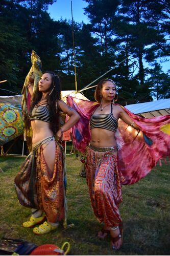 日中にポイ談義に華を咲かせた、さちさん。相棒のみきさんと二人でベリーダンサーとして各地を転戦しているとのことだった。 まだ、楽焔でファイヤーパフォーマンスをやったことが無いさちさんと、ファイヤーパフォーマンスをやってみるのが夢と語るみきさん…