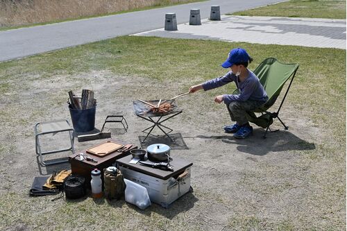 登山後にご飯を食べたいという事で、息子的にも俺的にも肉が良かった。 ともかく肉食いたい。 山頂で昼食というのもありだったが、肉を食べるにあたって装備や食材を荷揚げせねばならず、それも面倒だったので最近嵌っている焚火で焼肉をしようとなった。 場…