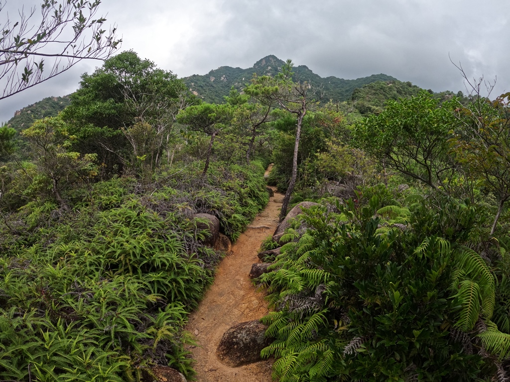 山頂付近の樹林帯には谷から森で冷やされた空気が吹き抜けていた。